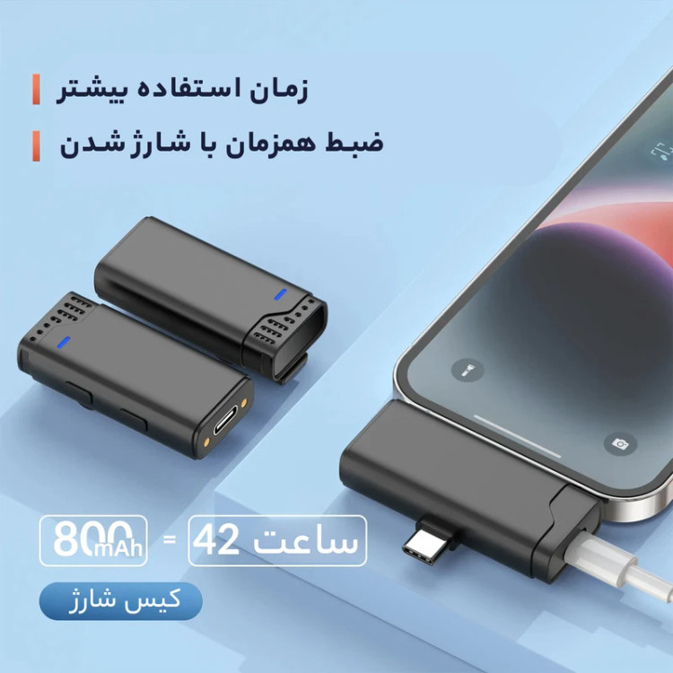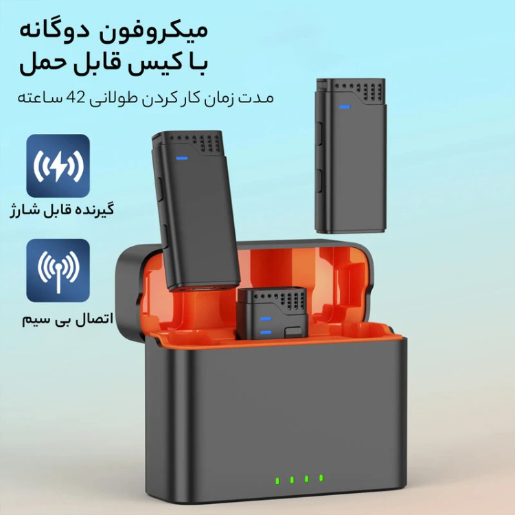 🎤 نوع میکروفون: یقهای بیسیم (Lavalier) با دو فرستنده