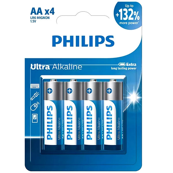 باتری قلمی آلکالاین فیلیپس مدل Ultra Alkaline بسته ۴ عددی