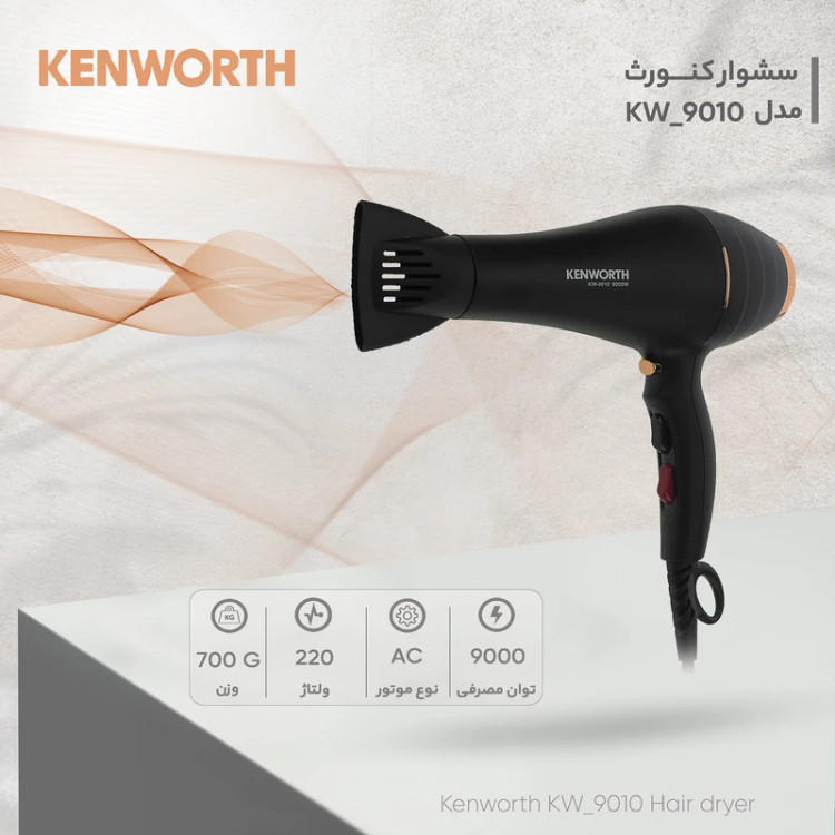 سشوار کنورث مدل KW-9010 با توان واقعی ۹۰۰۰ وات و موتور قدرتمند AC، انتخابی ایدهآل برای استفاده خانگی و نیمهحرفهای است. این دستگاه با فناوری یونیک به کاهش وز و درخشندگی بیشتر موها کمک میکند. طراحی ارگونومیک و وزن سبک آن، استفاده طولانیمدت را راحت میسازد.