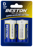 باتری سایز D بستون Beston مدل LR20 آلکالاین 1.5 ولت بسته 2 عددی