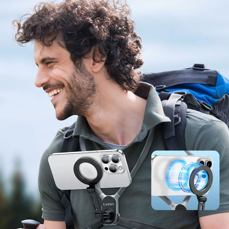 قابلیت چرخش۳۶۰ درجه با بازوهای انعطافپذیر اتصال مغناطیسی تکنولوژی Magsafe با ۱۶ آهنربای قوی جنس سیلیکون ضد حساسیت + استیل ضد زنگ راحتی بند گردنی با سطح نرم برای جلوگیری از خستگی مناسب برای گوشیهای ۴.۵ تا ۶.۷ اینچی ایمنی دارای گواهی CE