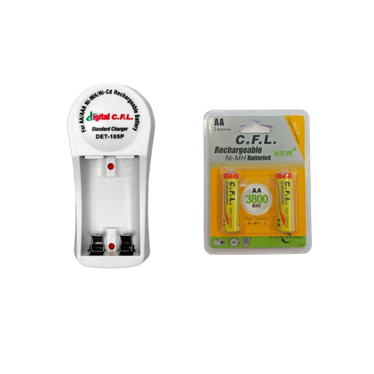 در کنار این شارژر، باتری قلمی قابل شارژ CFL با ظرفیت 3800 میلیآمپر ساعت، انرژی لازم برای دستگاههای الکترونیکی مختلف مانند دوربینهای دیجیتال، کنترلهای از راه دور، اسباببازیهای الکترونیکی و سایر وسایل پرمصرف را تأمین میکند. این باتری با تکنولوژی نیکلمتال هیدرید (NiMH) علاوه بر شارژ مجدد، کارایی بالا و طول عمر مناسبی دارد.