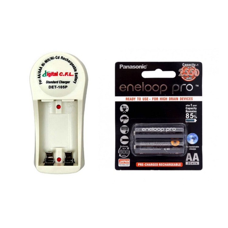 شارژر باتری سی اف ال مدل DET-105 به همراه باتری قلمی قابل شارژ پاناسونیک انلوپ 2550mAh