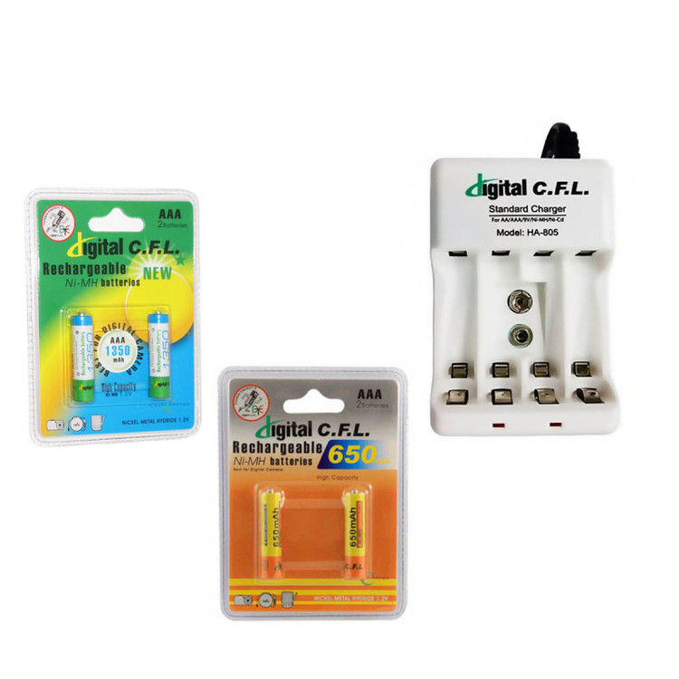 بسته 2 عددی باتری نیم قلمی شارژی C.F.L مدل 1350mAh به همراه بسته 2 عددی باتری نیم قلمی شارژی C.F.L مدل 650mAh