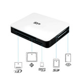 یک محصول جمعوجور، کارآمد و با طراحی زیبا است که ساخت شرکت SiliconPower میباشد. این کمپانی یکی از برترین شرکتهای فعال در این حوزه میباشد و محصولات آن از دوام و کیفیت بالایی برخوردارند. محصول فوق دارای طراحی ساده، شیک و کارآمدی است و به دلیل طراحی خوب، گزینهای مناسب برای استفاده بهصورت پرتابل میباشد. Silicon Power USB 3.0 All-In-One از انواع مختلفی از کارتهای حافظه پشتیبانی میکند که در پایان این متن ذکر شدهاند. ازاینرو با همراه داشتن آن، جدا از اینکه با چه مدل کارت حافظهای سروکار خواهید داشت، میتوانید همراه اطلاعات خود را بهآسانی جابهجا کنید. استاندارد سرعت اتصال USB این وسیله از نسل سوم است و با نسخه USB 2.0 هم سازگار میباشد. بنابراین حداکثر سرعت انتقال اطلاعات Gb/s5 را در اختیار شما قرار میدهد. ویژگی قابلتوجه دیگر آن پشتیبانی از کارتهای حافظه SDXC UHS-I با حداکثر ظرفیت 2 ترابایت است. . محصول فوق دارای وزن بسیار کمی است و به دلیل طراحی خوب، بهآسانی درون کیف و یا جیب شما قرار میگیرد. همچنین دارای یک نشانگر LED بر روی خود است که شما را از وضعیت دستگاه مطلع میسازد. در ادامه فرمت کارتهای حافظه سازگار با این وسیله را مشاهده خواهید کرد: